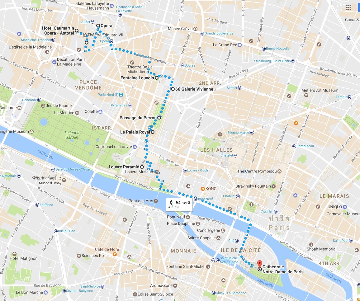 วันนี้ (5 เมษายน 2560) เพื่อนชาวฝรั่งเศสมารับพวกผมที่โรงแรมเวลาสิบโมงเช้า เดินเที่ยวชมเมืองปารีสระยะทางไม่ต่างจากเมื่อวาน เส้นทางที่เดินสรุปได้ตามแผนที่ข้างล่างนี้