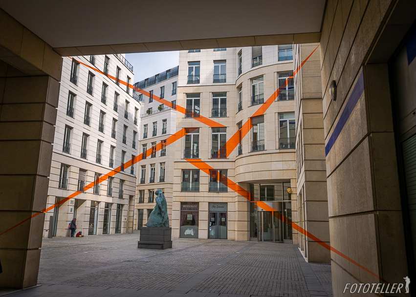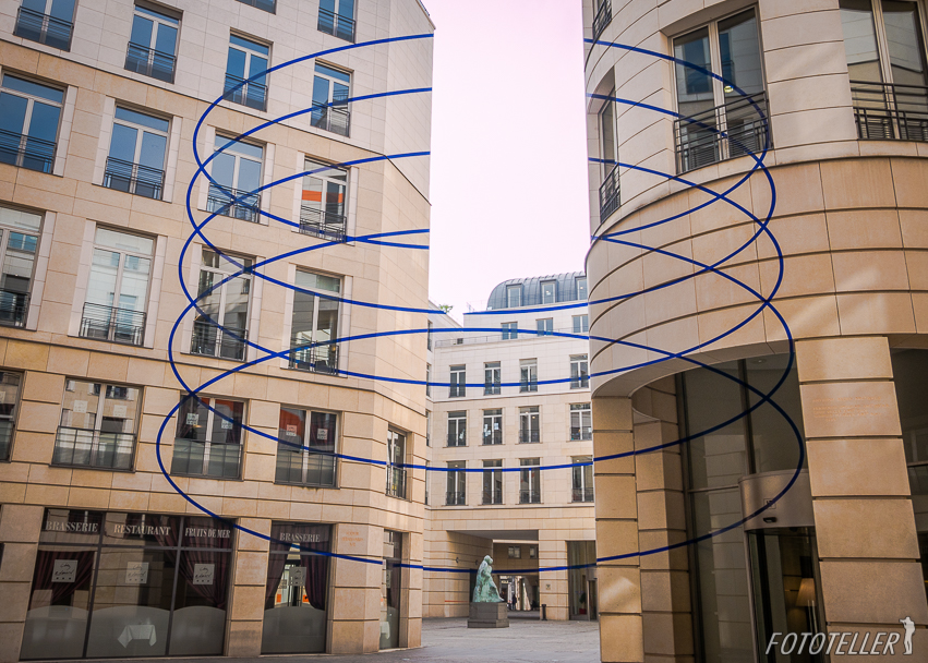 ออกจากโรงแรมเดินผ่านตึกที่มีการออกแบบลวดลายไว้ เราจะต้องพาตัวเองไปยังจุดที่ผู้ออกแบบกำหนดไว้จึงจะเห็นลวดลายต่อเนื่องกัน