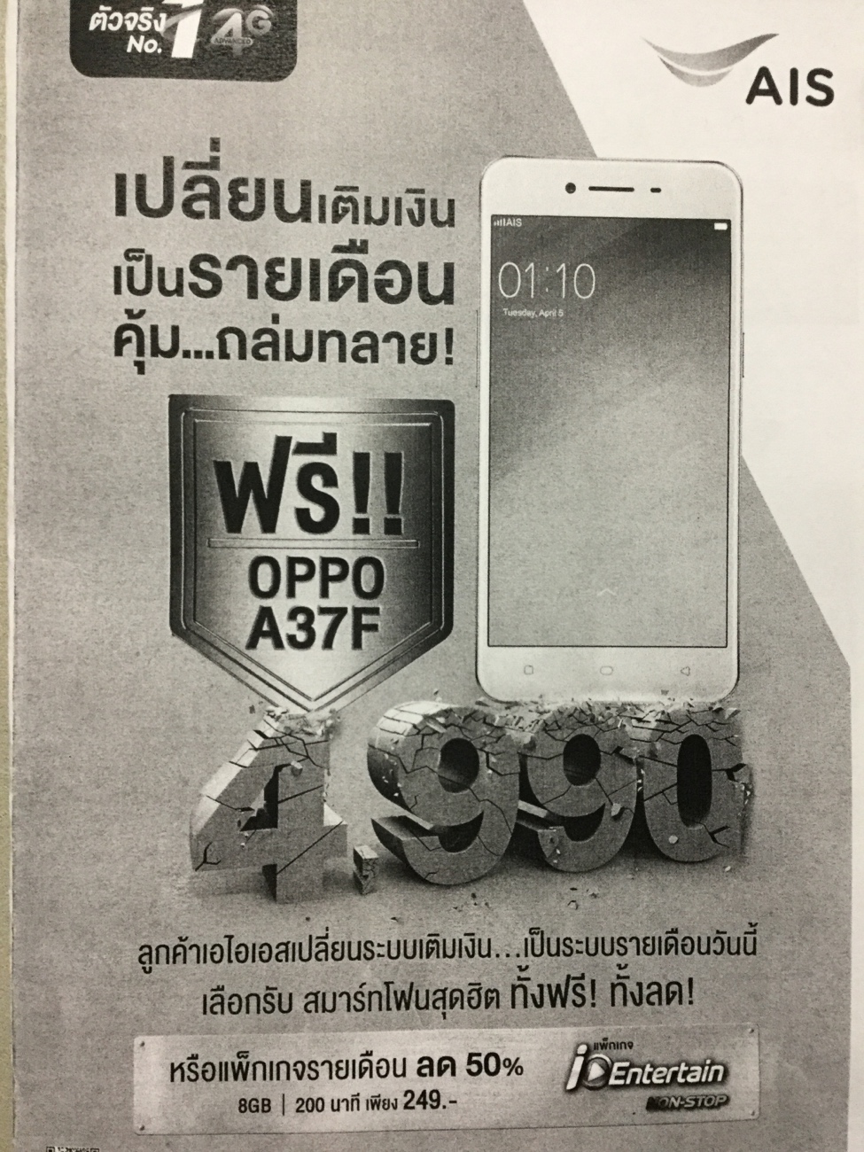ไม่ทราบว่ายังมีโปรนี้อยู่มั้ยคะ เปลี่ยนเติมเงินเป็นรายเดือนรับoppo a37 ฟรี