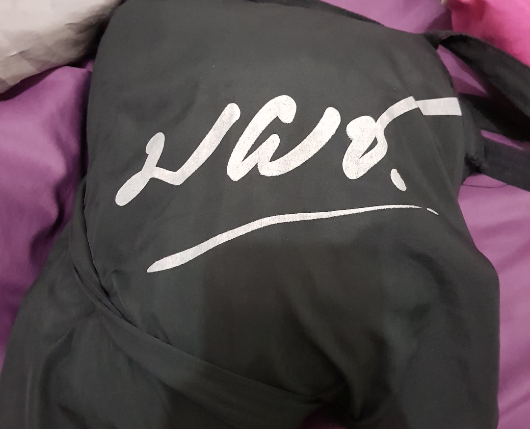 คือลูกพี่ลูกน้องคนเนี่ยบวชอยู่เค้าอายุยี่สิบ.....พึ่งบวชแล้วแม่เค้ามาขอให้ไปช่วยเค้าถือย่ามเวลาบิณฑบาตแล้วที่นี้วันนี้ของมันเยอะสพาย2ย่ามแล้วยังถือในมืออีก พอกลับวัดมาคือจะวางของมือซ้ายสพายย่ามผลไม้