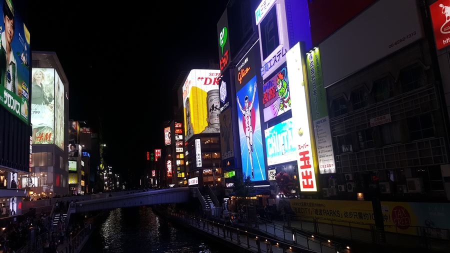 มาถึงย่านนัมบะคนเยอะมาก โดยเฉพาะคนจีนกับคนไทย ผมกับแฟนมายืนถ่ายป้ายไฟกูลิโกะที่จัดว่าเป็นแลนด์มาร์ค ถ่ายยากมาก คนเดินตัดหน้าผ่านไปมาตลอด กว่าจะได้รูปได้มุมโดนแฟนบ่นหูชา 555