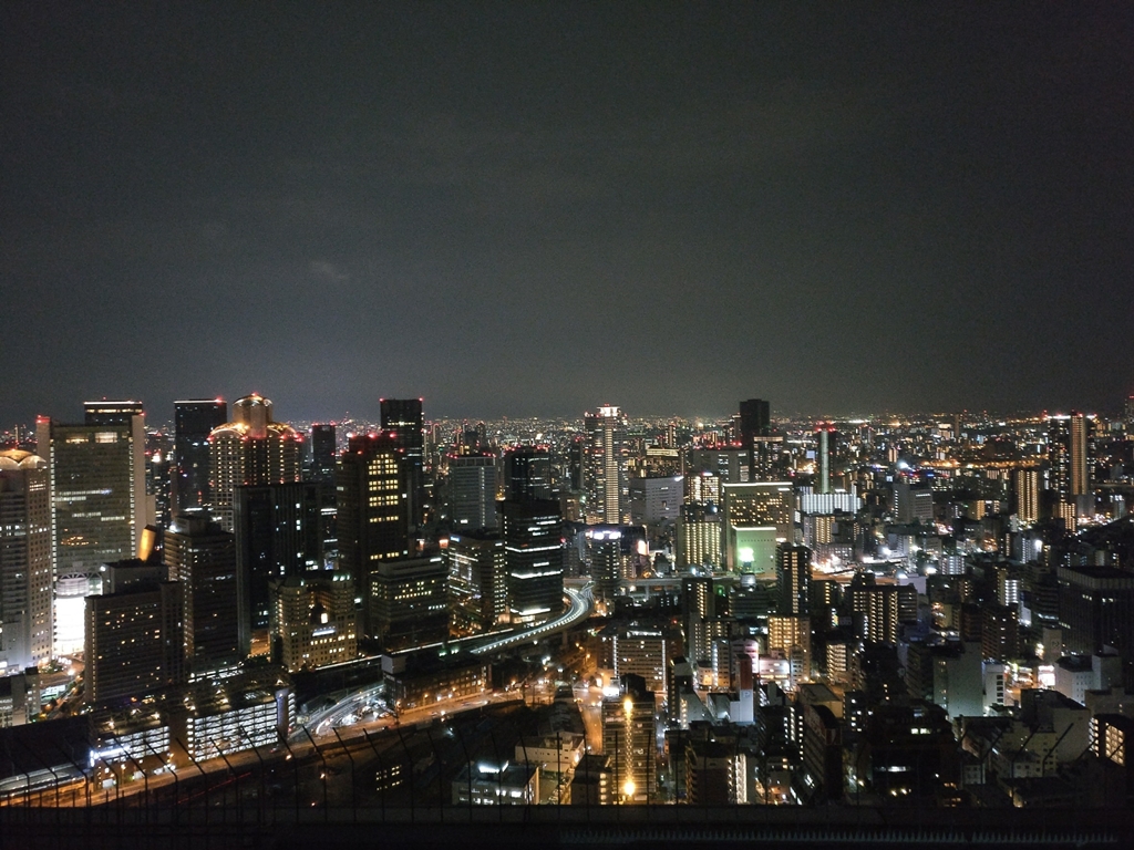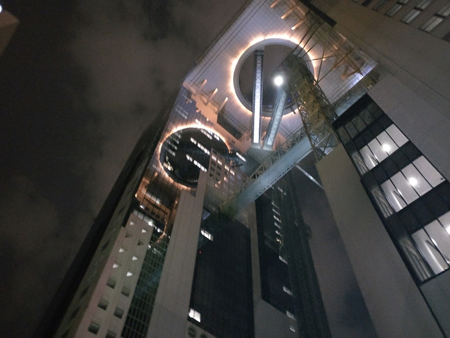 เริ่มจะมืดพวกผมตัดสินใจไปชมวิวเมืองกันที่ตึกอุเมดะ สกาย ซึ่งชั้นบนของอาคารจะเป็นจุดชมวิว ใช้บัตร OAP เข้าชมได้ฟรีอีกแล้ว ตัวตึกสูงอลังการขึ้นไปด้านบนเห็นวิวเมืองโอซาก้ายามค่ำคืนสวยมากๆเลยครับ