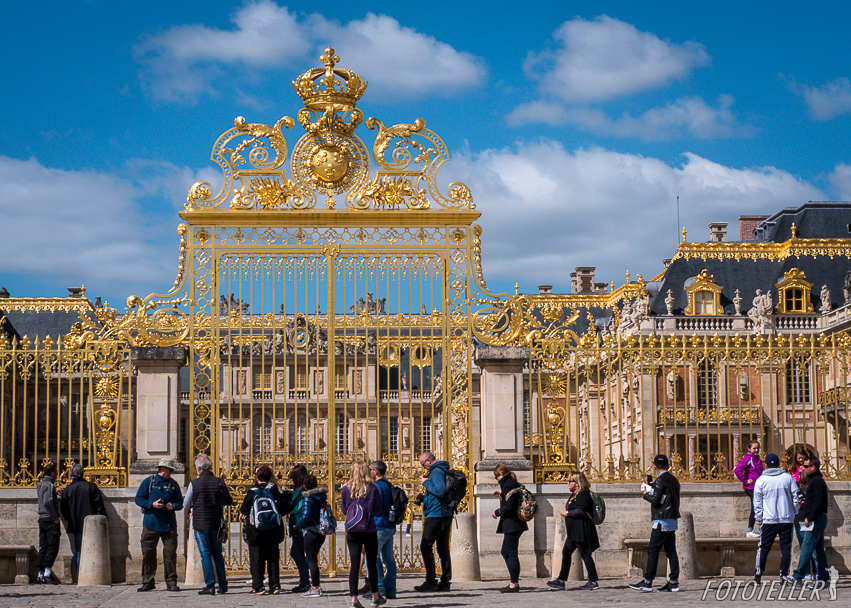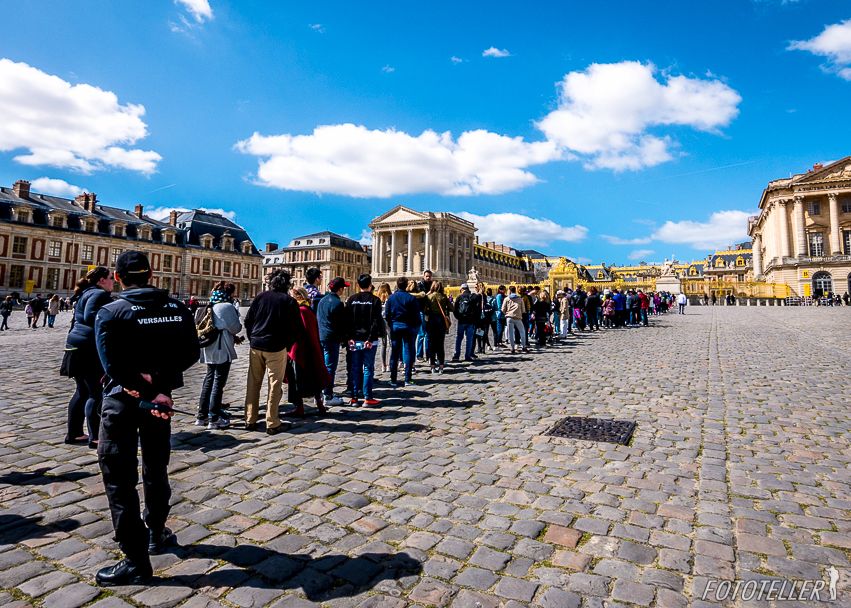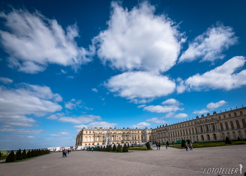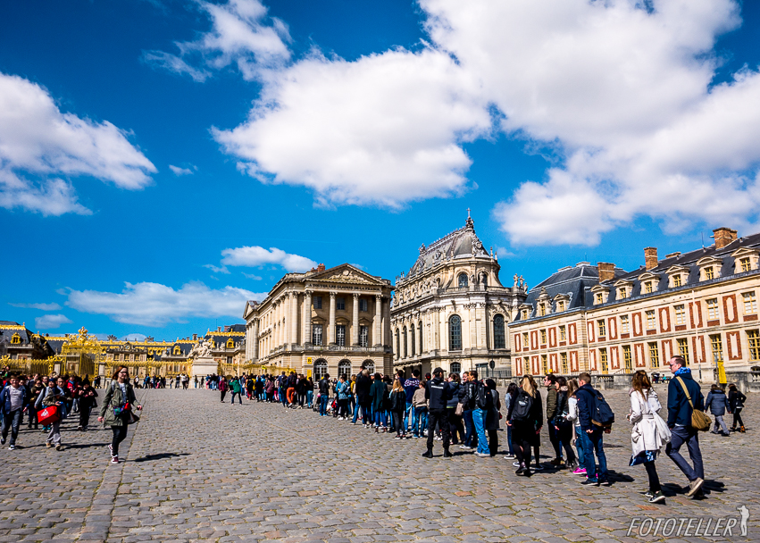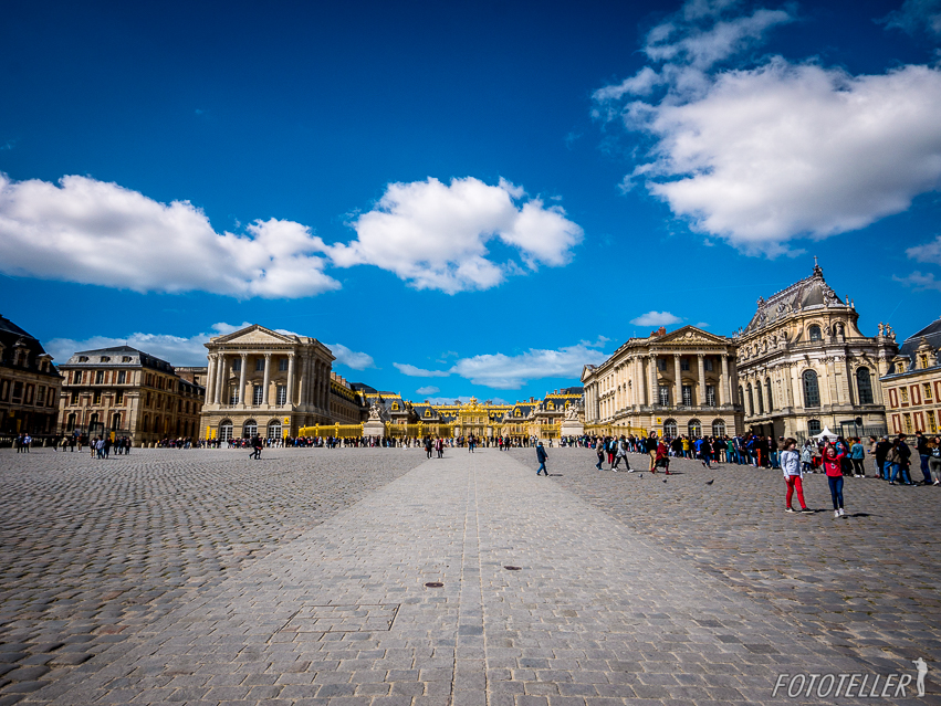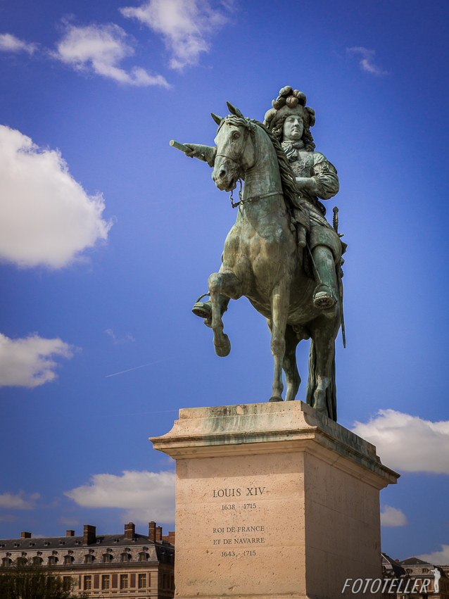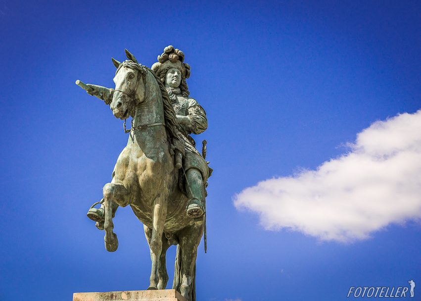 ที่เห็นตั้งตระหง่านอยู่กลางลานกว้างหน้าพระราชวังก็คืออนุสาวรีย์พระเจ้าหลุยส์ที่ 14 ผู้ดำริให้สร้างพระราชวังนี้