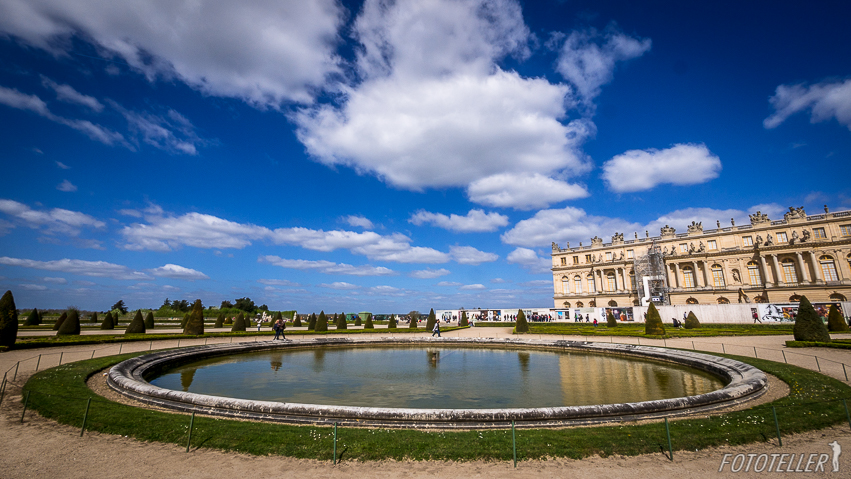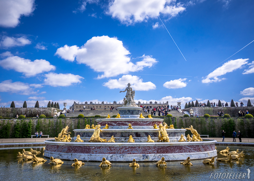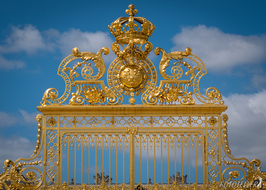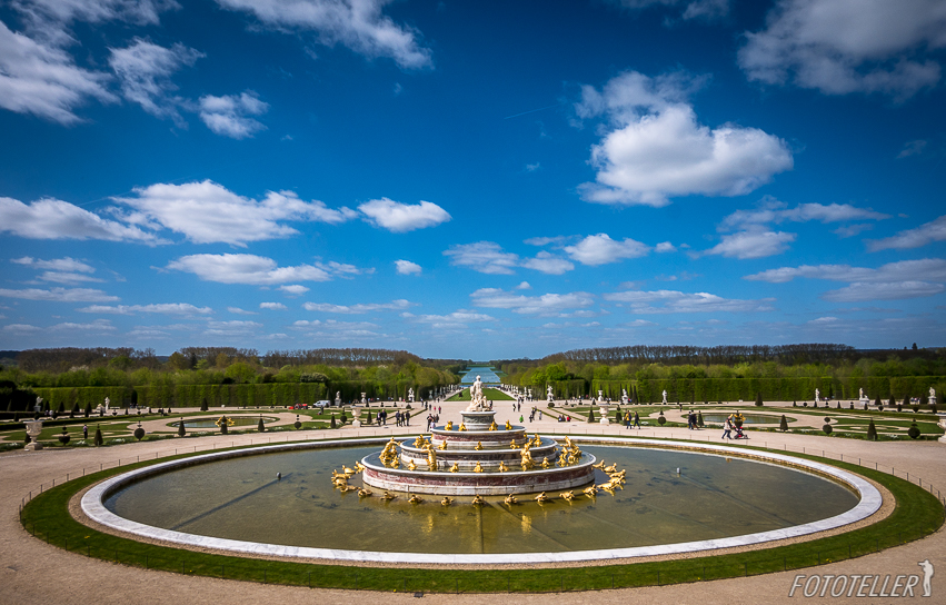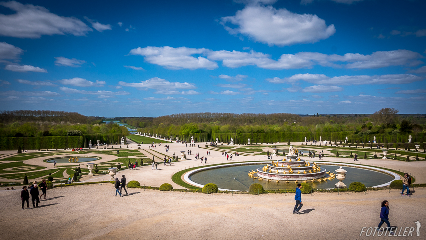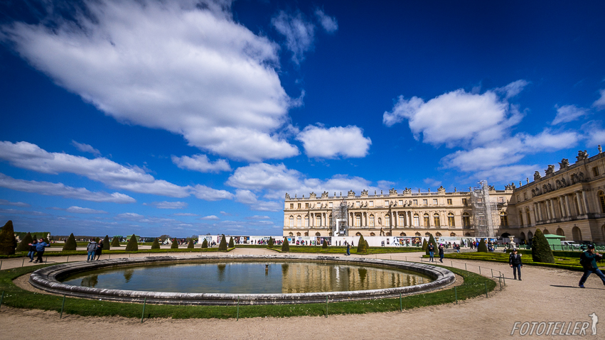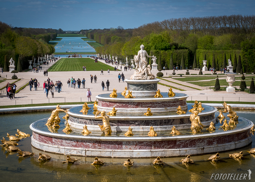 ที่เห็นตั้งตระหง่านอยู่กลางลานกว้างหน้าพระราชวังก็คืออนุสาวรีย์พระเจ้าหลุยส์ที่ 14 ผู้ดำริให้สร้างพระราชวังนี้