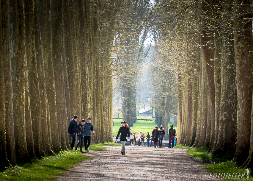 พวกผมเป็นโรคแพ้คนจำนวนมาก ก็เลยเดินผ่านประตูหน้าวังออกไปทางซ้าย เพื่อจะไปยังบริเวณสวนแทน