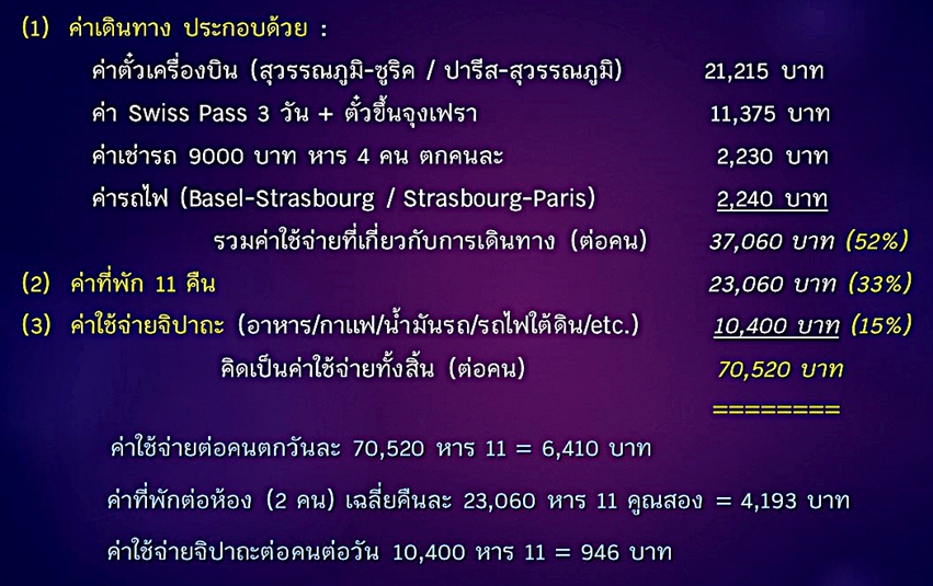 ผมลองนำไปเปรียบเทียบกับข้อมูลทริปสวิสปีที่แล้ว ที่รีวิวไว้ใน “ไปเที่ยวสวิส อย่าคิดมาก” (ดูข้อมูลได้ที่