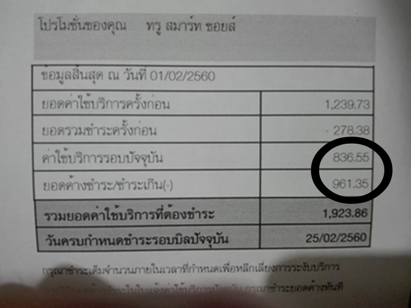 ทำไมบิลที่ออกมามีรอบค่าใช้บริการไม่เท่ากันแบบนี้ สลับกันไปมาตลอด ระหว่าง 836.55 บาท กับ 961.36 บาท