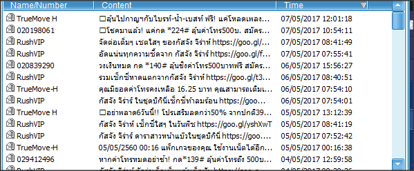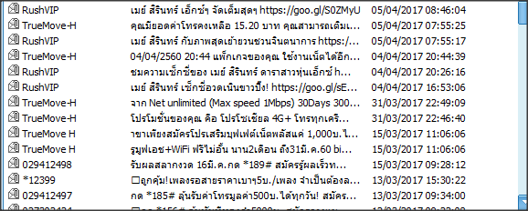 เนื่องจากเกิดความสงสัยว่าเงินหายตลอด นับแต่ที่เปิดใช้ซิมทรู วันนี้เลยแชทออนไลน์คุยกับเจ้าหน้าที่ของทรู ให้บริการดีมาก เจ้าหน้าที่ของทรูบอกว่า RUSH VIP หักsmsครั้งละ5.35บาท เจ้าหน้าที่ทรูทำการยกเลิกให้ เอ้าไม่เคยได้สมัครเลยไม่เคยแม้กดไปหามันเลยแม้แต่น้อย เนื่องจากใช้เเบบเติมเงินใช้สมัครnet เท่านั้น ใช้ใส่แอร์การ์ดเสียบเร้าเตอร์ ปรกติถ้าหมดแพ็กเกจ ถึงจะเติมเงินแล้วซื้อเพจเกจถอดแอร์การ์ดจากเร้าเตอร์มาเสียบโน๊ตบุ๊ค ก็คิดว่าsms ขยะกวนใจ มันคงไม่หักเงินเพราะเราไม่ได้กดอะไร