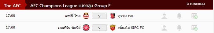 AFC Champion League ประจำวันอังคาร ที่ 9 พฤษภาคม 2017