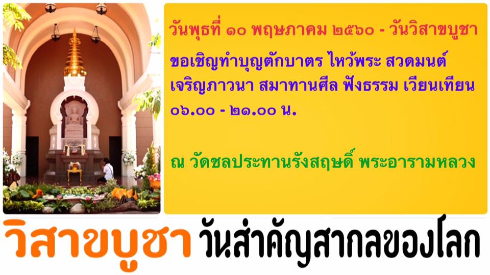 ขอเชิญร่วมทำบุญใส่บาตร วันวิสาขบูชา 2560