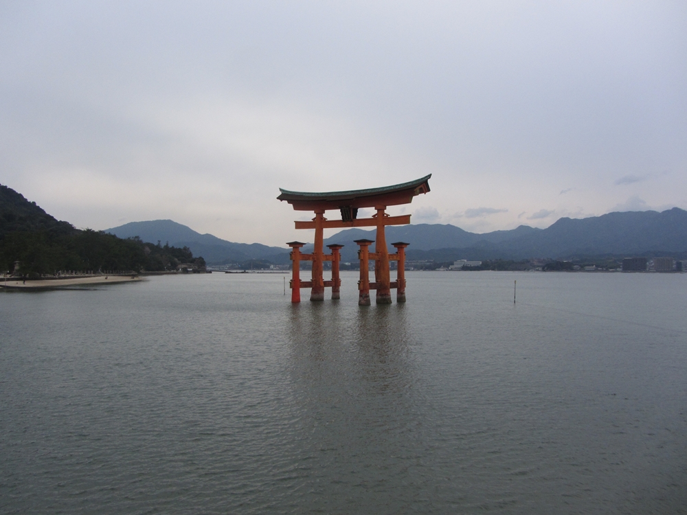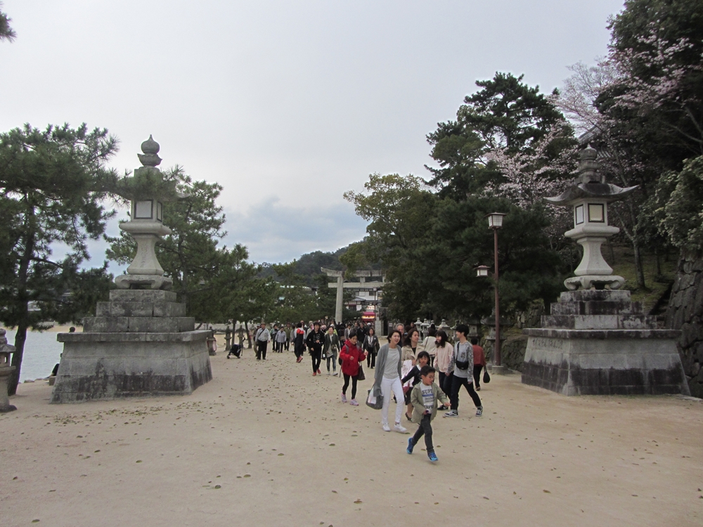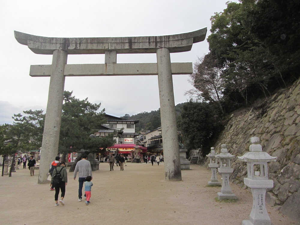 ลงเรือแล้วก็เดินไปที่เสาโทริอิ