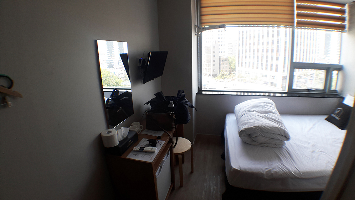 ทางที่พักเป็นคนแนะนำเราเองว่าให้จองผ่านAgoda เนื่องจากมีโปรโมชั่นอยู่ค่ะ ห้องเป็นแบบ Standard Double Room นอนได้ 2 คน จริงๆเรานอนคนเดียว แต่รู้ว่าห้องพักที่โซลมันเล็กเลยยอมจ่ายนิดนึง เผื่อแฟนมานอนดูทีวีด้วยค่ะ^^