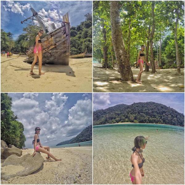 กินอิ่มก็เดินไปที่ข้างหลังอุทยาน เป็นที่ให้กางเต้นส์ริมหาด แล้วดูหาดสวยมากกก หาดทรายขาว น้ำใสมากกกก ตรงนี้น้ำเป็นสีเขียวสวยเลย เดินเล่น ถ่ายรูป เอาตัวจุ่มน้ำ วนไปจนกว่าเค้าจะเรียกขึ้นเรือ อิอิ