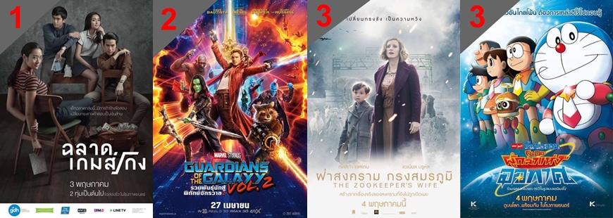 อันดับ 3 : The Zookeeper's Wife ภาพยนตร์ที่สร้างมาจากเรื่องจริงของผู้หญิงคนหนึ่ง ที่ต้องกลายมาเป็นวีรสตรีในช่วงสงครามโลกครั้งที่ 2 ช่วงปี 1939 และ Doraemon: Nobita's Space Heroes การผจญภัยในอวกาศของพวกโนบิตะที่ต้องสู้กับสัตว์ประหลาดจากต่างดาวเพื่อปกป้องดาวดวงหนึ่งของเพื่อน