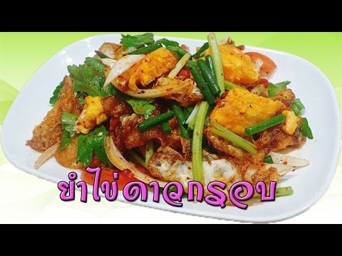 1.นำไข่ไก่ลงทอดเป็นไข่ดาวที่จะฟองจนกรอบ พักไว้ให้อุ่นหั่นเป็นชิ้นพอคำ