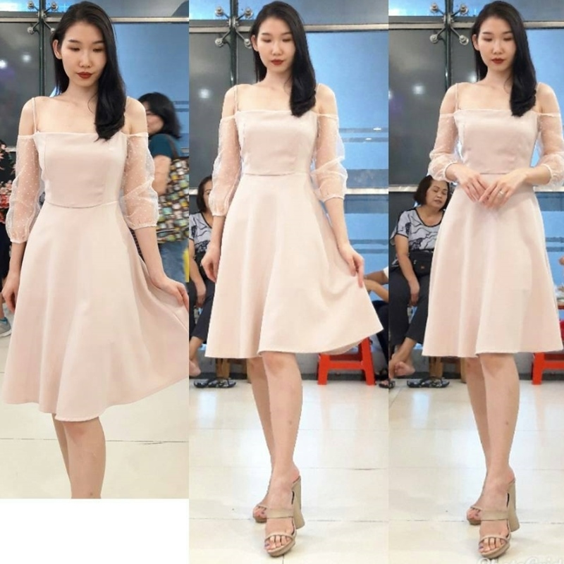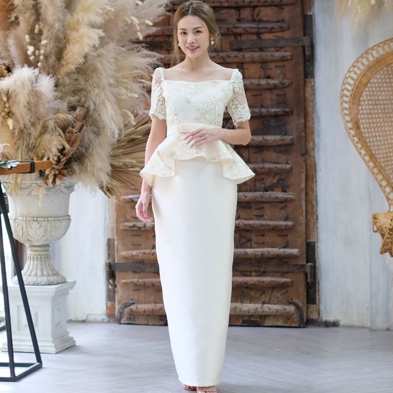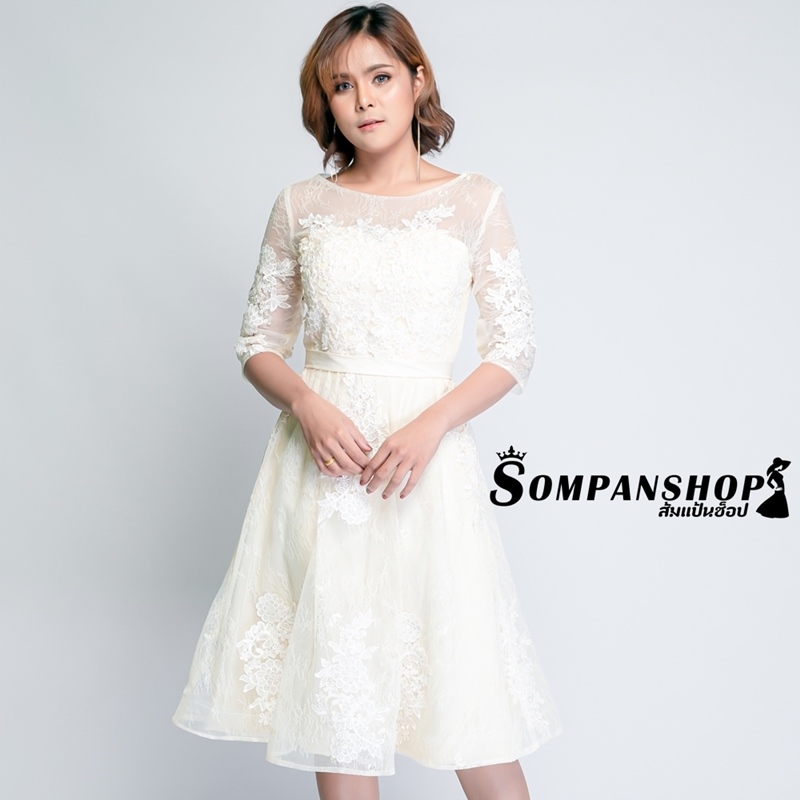 ชุดเดรสยาวสีครีม ชุดเดรสสั้นสีครีม ชุดเดรสออกงานสีครีม