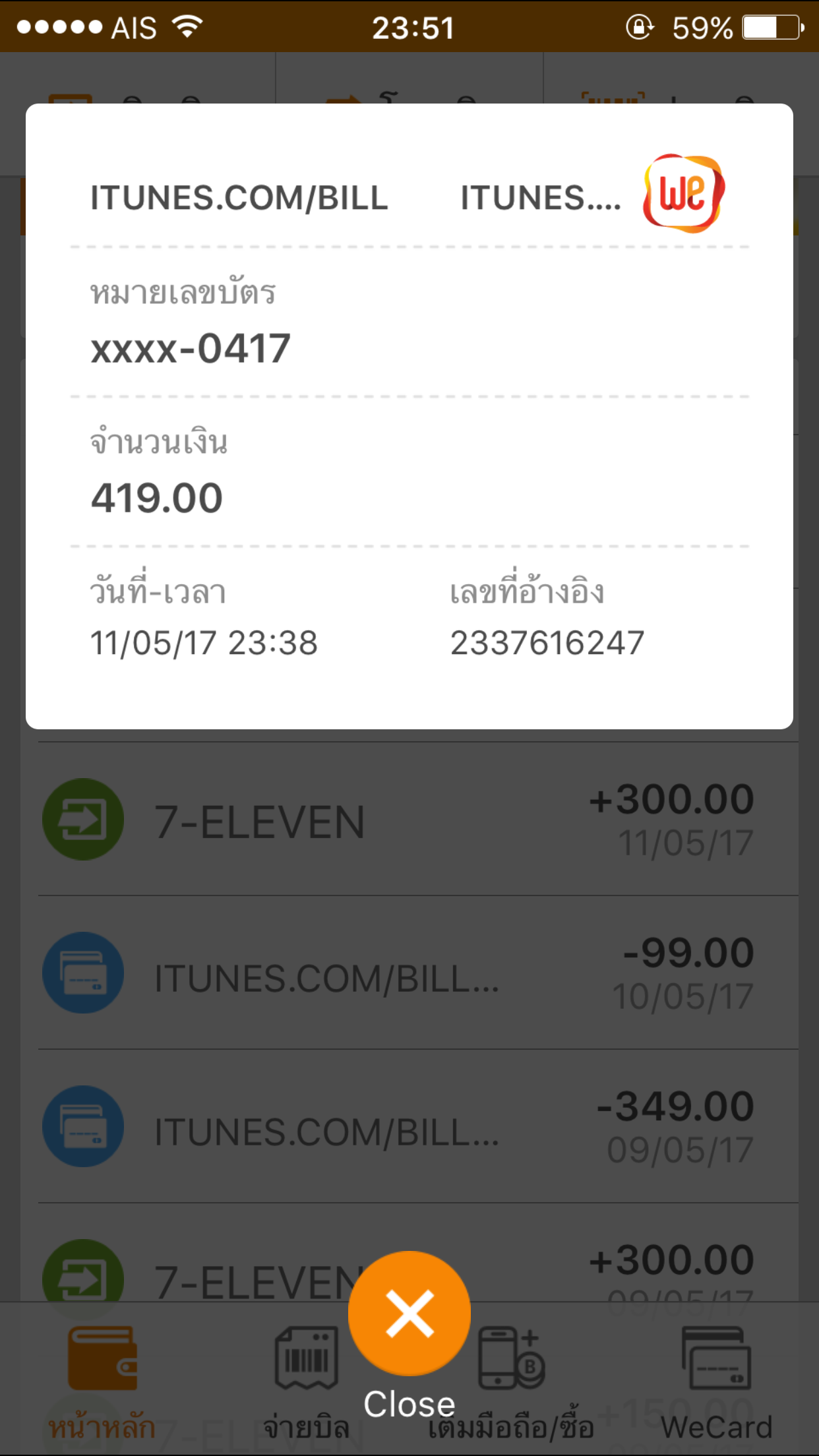 We card ซื้อของผ่าน iTunes เสียเงินแล้วไม่ได้ของ ไม่มีbills จากiTunes ด้วย