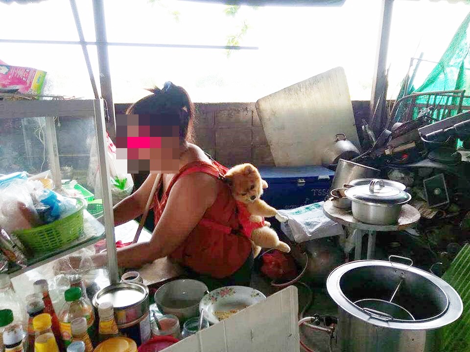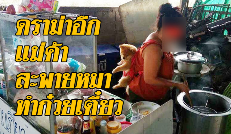 ดราม่าไปอีก! แม่ค้าทำก๋วยเตี๋ยว สะพายหมาน้อยไว้ที่หลัง โดนถามความสะอาดและสงสารหมา