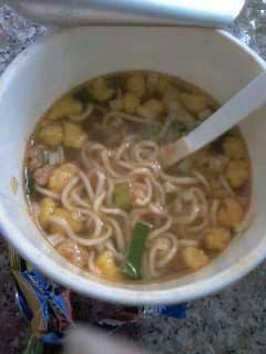 บะหมี่กระป๋องฟรี ก็อร่อยนะ ยามที่ไม่มีเงินซื้อข้าวกิน. กินอะไรไปก่อนให้รอดไปวันๆ อร่อยดีมีเต้าหู้พองตัวในน้ำด้วย