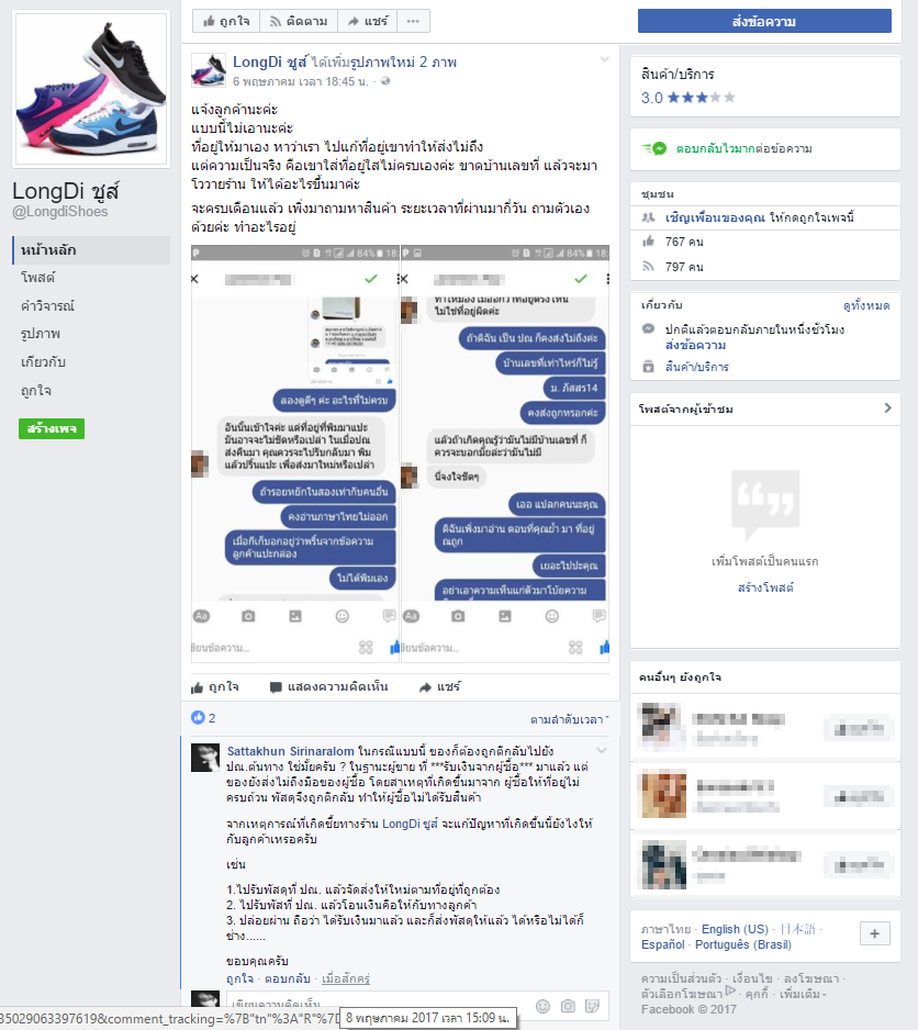 และ เมื่อวันที่ ... 08/05/60 ผู้ขายได้มีการโพสข้อความสนทนา ลงบนเพจFB และหลังจากนั้นก็ทำการลบโพสพร้อมกับ Block ผู้ใช้ไปเลย