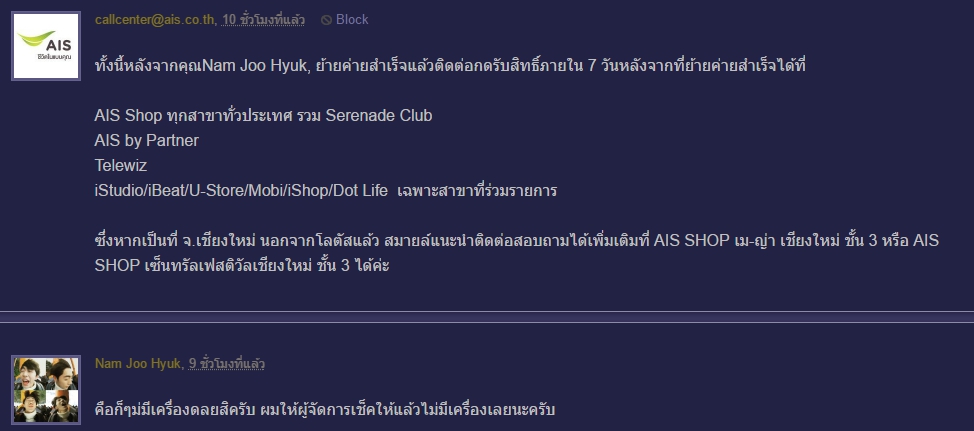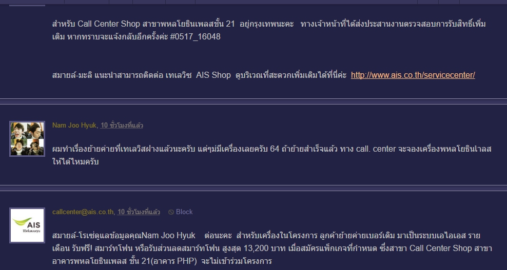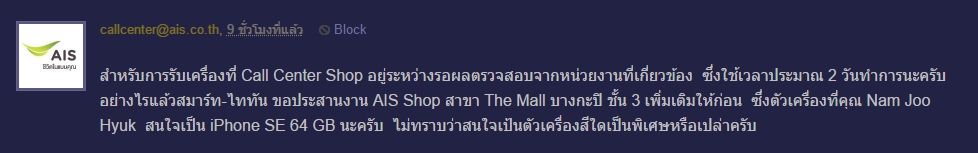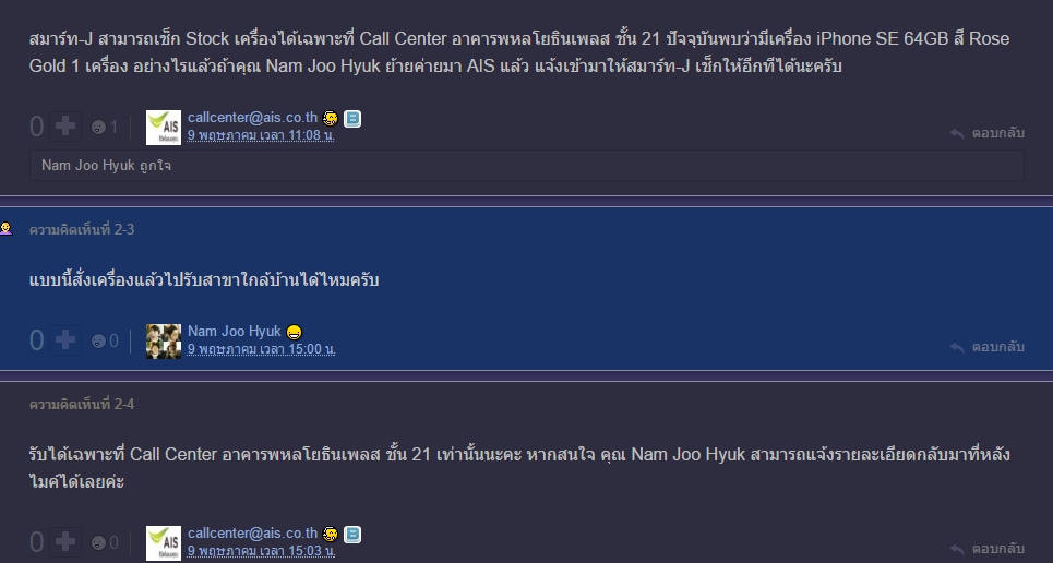 ต่อมาก็ได้แจ้งถึงปัญหา ทาง ais สมาร์ทไททันก็ได้ช่วยอีกครั้งโดยถามถึงสาขาที่สะดวก และรุ่นรวมถึงสีที่ต้องการ