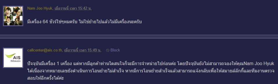 ปล. คือไม่ได้อยากเรียกร้องนะครับแต่ว่าผมก็กลัวย้ายค่ายเสร็จแล้วไม่มีเครื่องแบบที่คนอื่นโดนกัน กระทู้ของ https://pantip.com/topic/36393777 โดยผมได้สอบถาม จขกท.สรุปเขาหาเครื่องที่ พระรามเก้า บางนา ซีคอนศรีฯ พาราไดซ์ มอลล์บางกระปิ เซ็นทรัลอีสวิลล์ ไม่มีเลยสักที่ ลองติดต่อ CC shop ดูก็ไม่มีเหมือนกัน และผ่านไป 7 วันก็ยังหาเครื่องไม่ได้ เป็นอันหมดเวลา แล้วผมจึงสอบถามหลายครั้งผ่านทางหลังไมค์ ais pantip ก็ได้เช็คที่สาขาพหลโยธินเพลสบอกมีเครื่อง แต่พอย้ายแล้วก็บอกซื้อสาขานี้ไม่ได้ สาขาอื่นก็ไม่มีเครื่อง คือแบบแอบเซ็งๆนะครับ ยังไงก็รบกวน ais ช่วยในความหวังสุดท้ายที่บอกจะช่วยติดต่อสาขาเดอะมอลบางกะปิให้หน่อยนะครับ ถ้าไม่มีจริงๆผมจะได้ซื้อ 32GB ของทรูเลยครับ ขอบคุณมากครับ