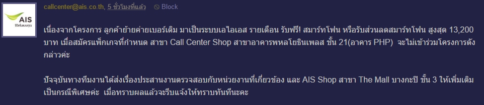 หลังจากคุยไปเรื่อยๆ ก็บอกว่าให้รอย้ายสำเร็จถึงจะช่วยอีกที โดยที่เอาเครื่องที่เหลือสาขาที่ไม่ร่วมรายการมาแจ้งอีกแล้ว