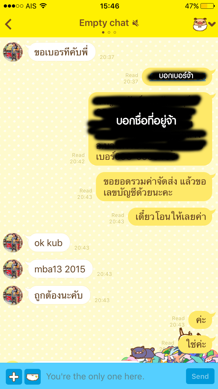 ผลสุดท้าย เราก็รอจนบ่ายก็ไม่เห็นมีคนมาส่งของสักที โทรไปก็ไม่รับสาย ทีนี้แหล่ะเราคิดว่าโดนละจ้า เปิดไลน์มาอีกทีคนร้ายบล๊อคเรียบร้อยจ้า โดนโกงตามระเบียบจริงๆ