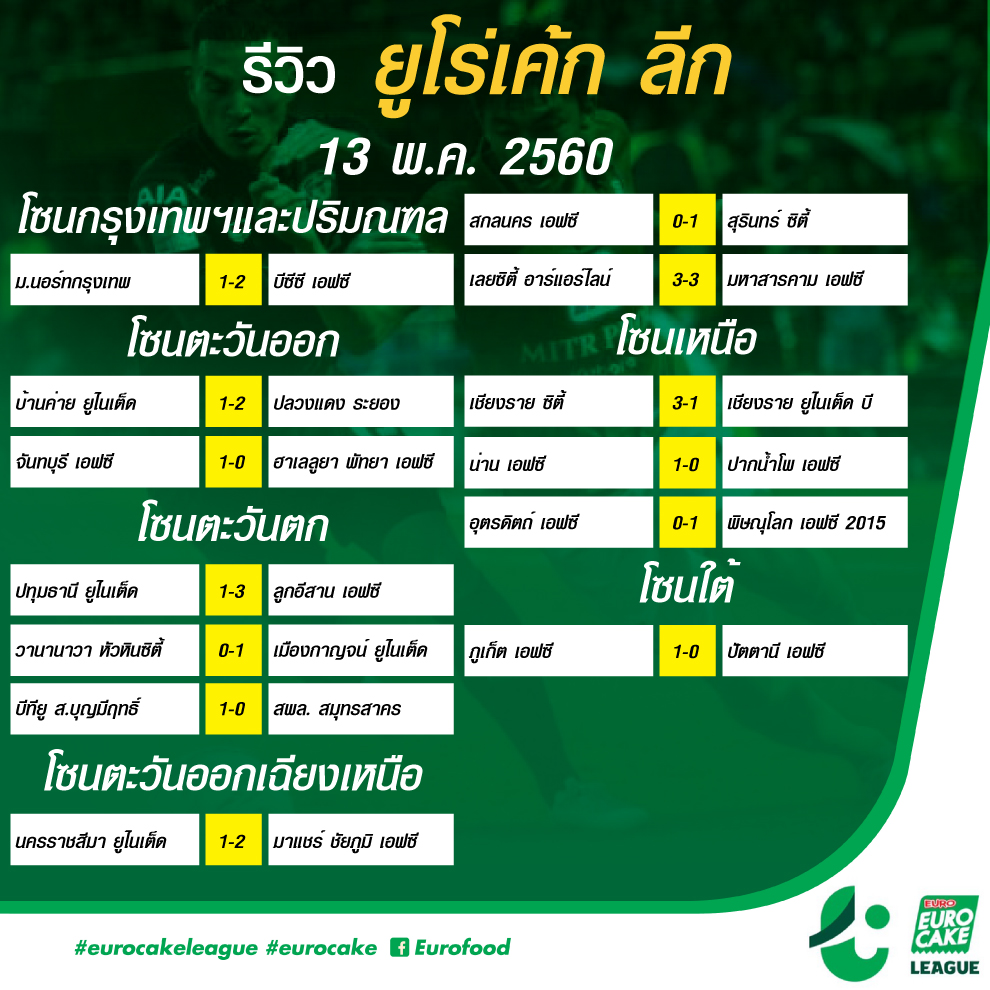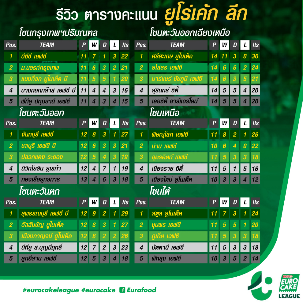 ขอบคุณข้อมูลจาก ยูโร่เค้ก ลีก ผู้สนับสนุนฟุตบอล ยูโร่เค้ก ลีก โปร และ ยูโร่เค้ก ลีก อย่างเป็นทางการ
