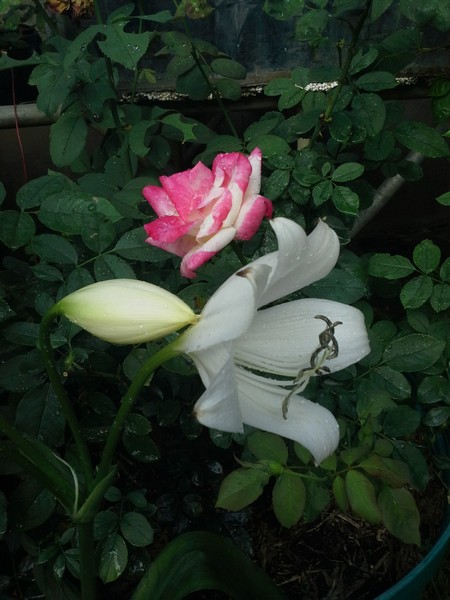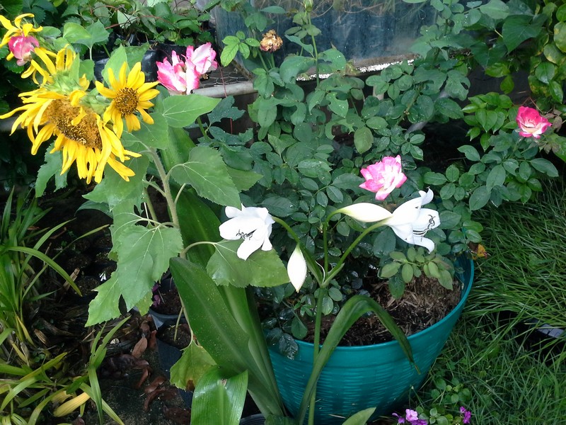 ต้นสุดท้ายที่บานวันนี้ ไม่แน่ใจว่าเป็นพวกพลับพลึงไหม แต่ดูดอกแล้วไม่น่าจะใช่ ภรรยาเอามาจากที่ทำงาน บอกว่าพลับพลึงดอกมีกลิ่นหอม เช้านี้ผมดมดูก็ไม่มีกลิ่นเลย