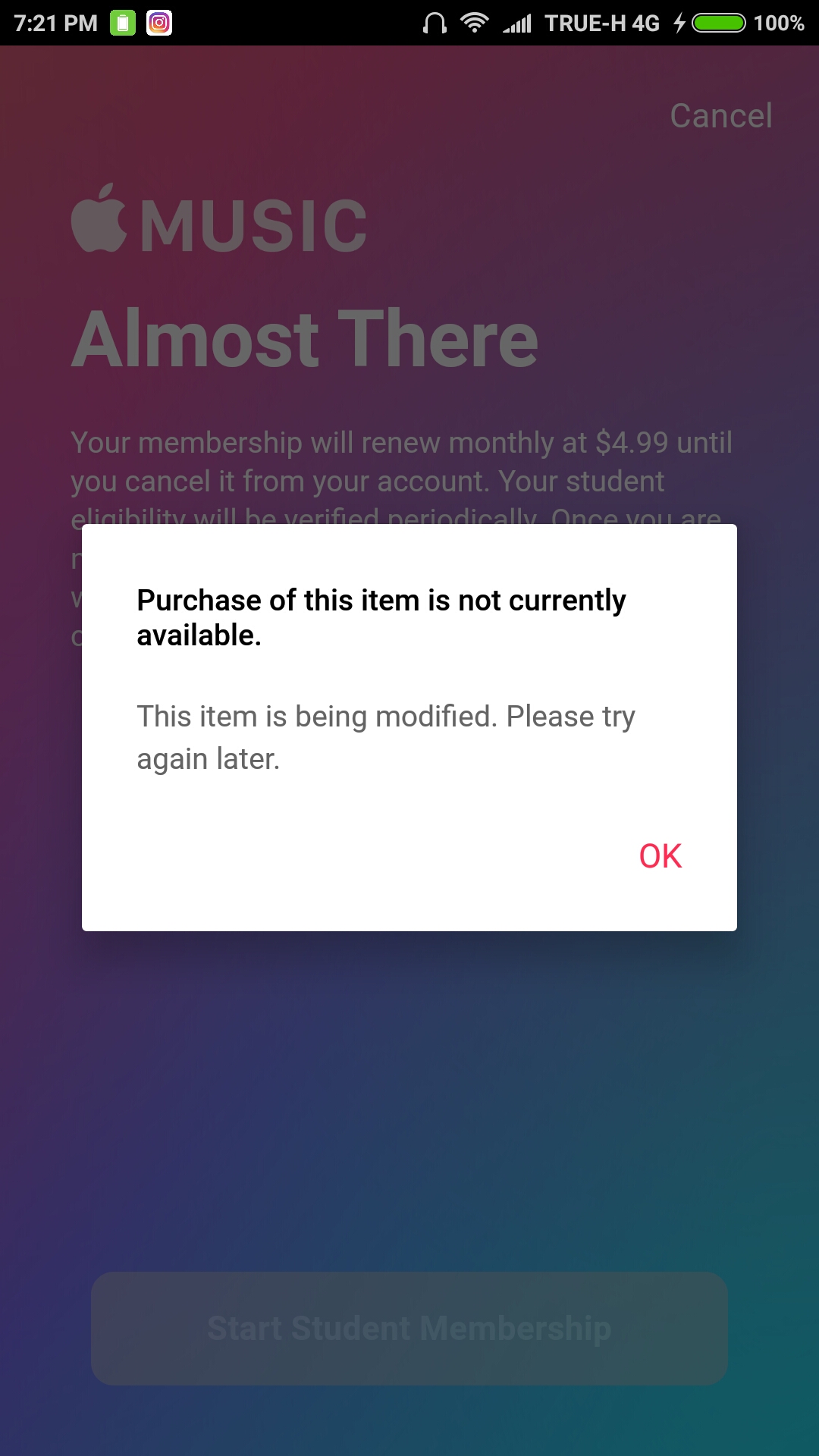 คือผมรับสิทธิ์ใช้apple musicจากทรูมาฟรี3เดือน หลังจากนั้น 129/เดือน แต่ผมจะใช้สิทธิ์ของ student ในราคา 69/เดือน แต่กดใช้ไม่ได้ ผมต้องรอสามเดือนแล้วยกเลิกกดสมัครstudent หรือ ยกเลิกไปแล้วใช้ student เลย