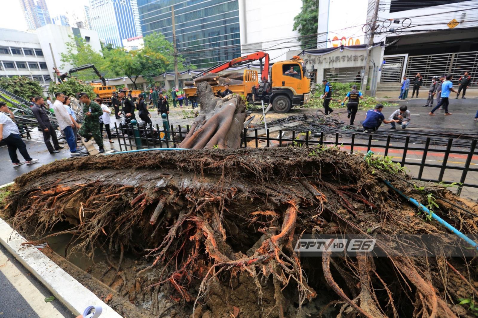 ภาพจากวงจรปิด นาทีชีวิตดับ ต้นไม้ล้ม เกี่ยวสายไฟโค่นเสาไฟทับคนขับมอไซ ข้างเซนทรัลชิดลม