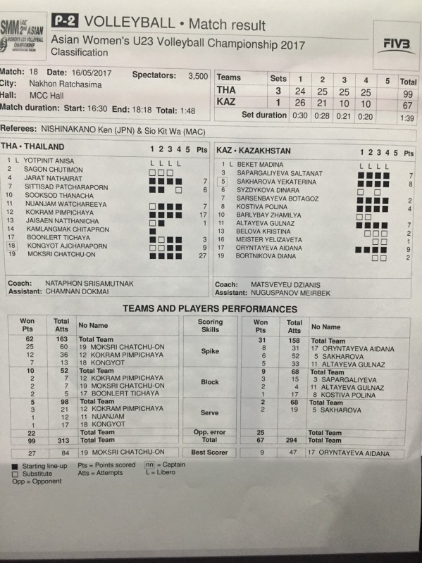วอลเลย์บอลหญิง U23 คาซัคสถาน - เกาหลีเหนือ