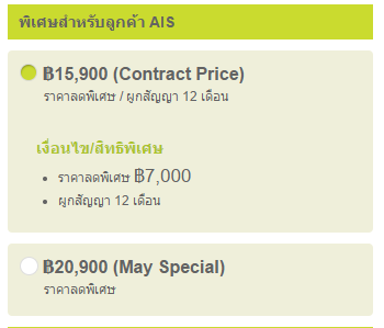 หรือจะเป็นเครื่องจาก AIS ที่ราคา 15900 แต่ต้องติดสัญญาปีนึง