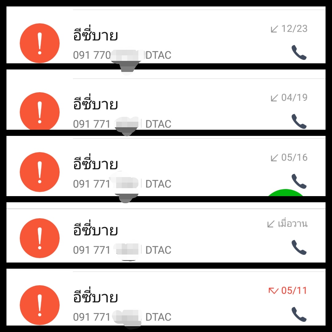 เห็นเป็นโทรจากอีซี่บาย แบบนี้คือไรคะ เราไม่เคยใช้บัตรพวกนี้เลย จะมีผลกระทบอะไรกับเรามั้ยคะ โทรมาเกือบทุกเดือนเลยคะ โทรมาขอสายคุณ.... ตลอด งงมากทำไมถึงมาเบอร์เราได้ ใช้มา 4-5ปีแล้ว