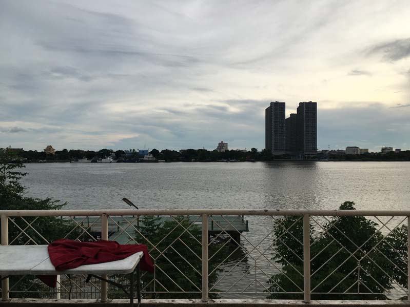 ผมไปท้องฟ้ายังไม่มืด พนักงานเลยจัดโต๊ะเล็กแบบนั่งคนเดียว หันหน้าไปทางแม่น้ำเจ้าพระยาให้ครับ