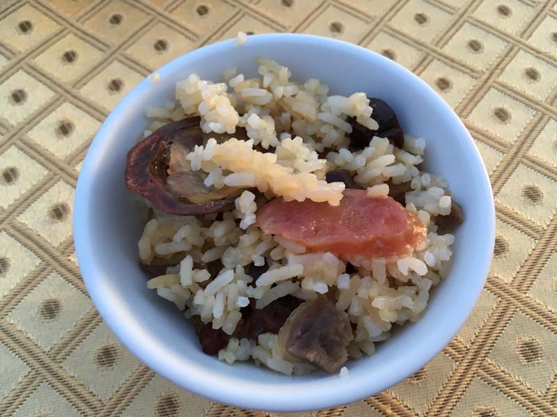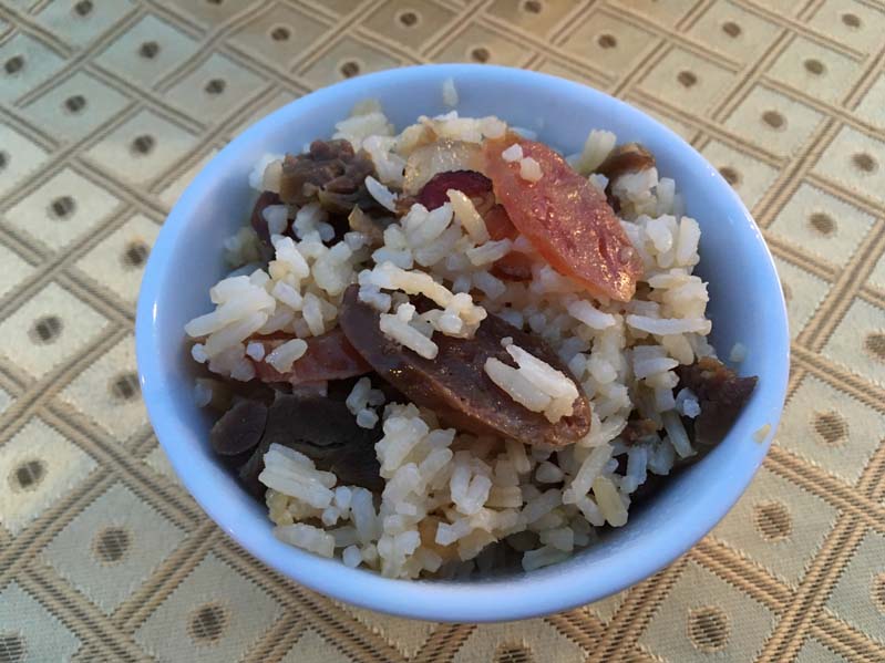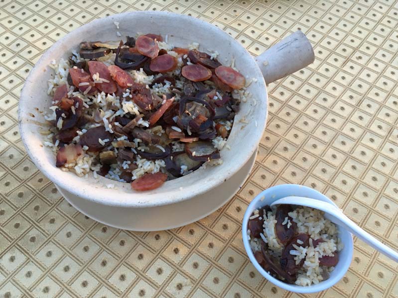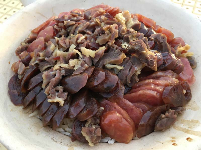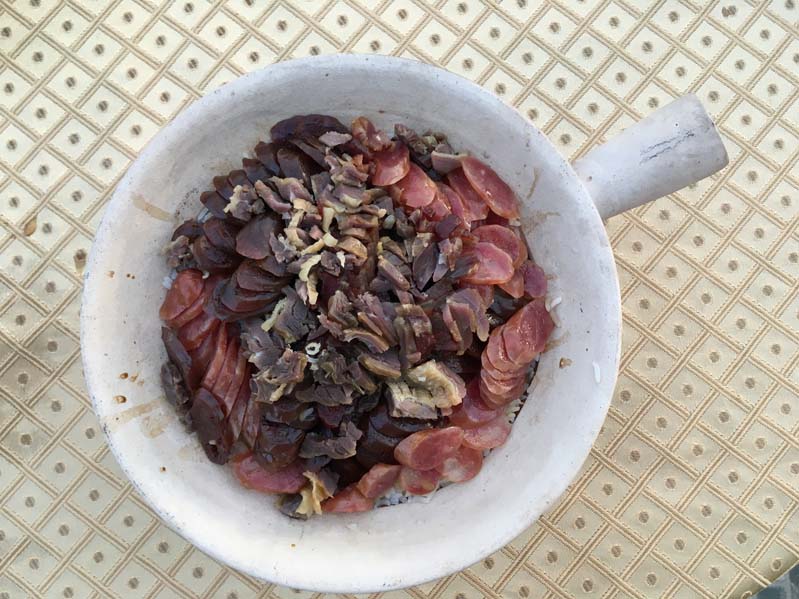 เค้าจะเอาข้าวสวยมาอบในหม้อดินวางเครื่องทั้ง 5 ชนิด (กุนเชียงแดง กุนเชียงดำ ตับแก้ว หมูสามชั้นแห้งและ เป็ดแห้งเค็ม)