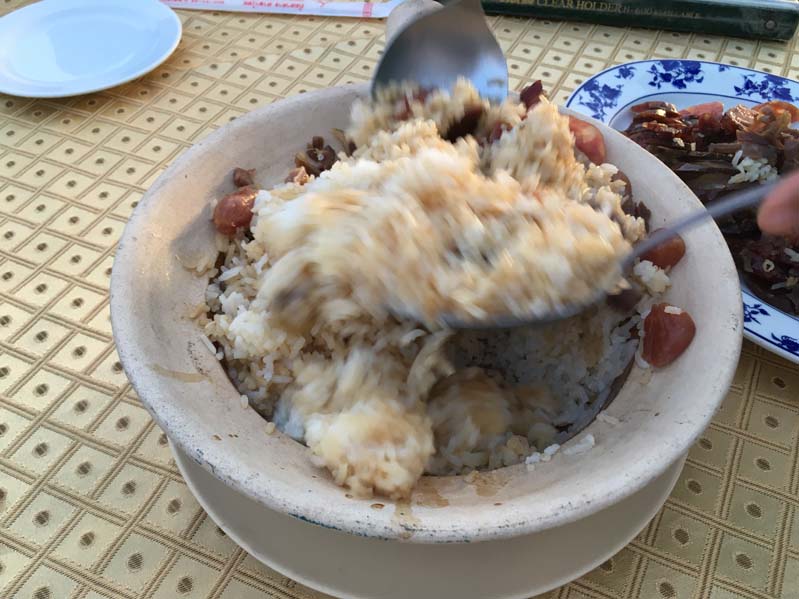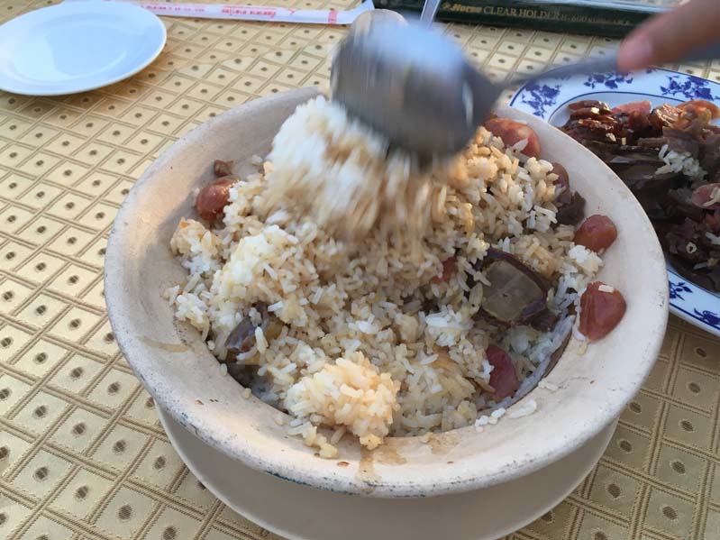 ข้าวอบกุนเชียงที่นี่ มีไซส์เดียว และใหญ่มาก (ถ้าเป็นโต๊ะจีนก็จะกินได้ 8-10 คนพอดี)