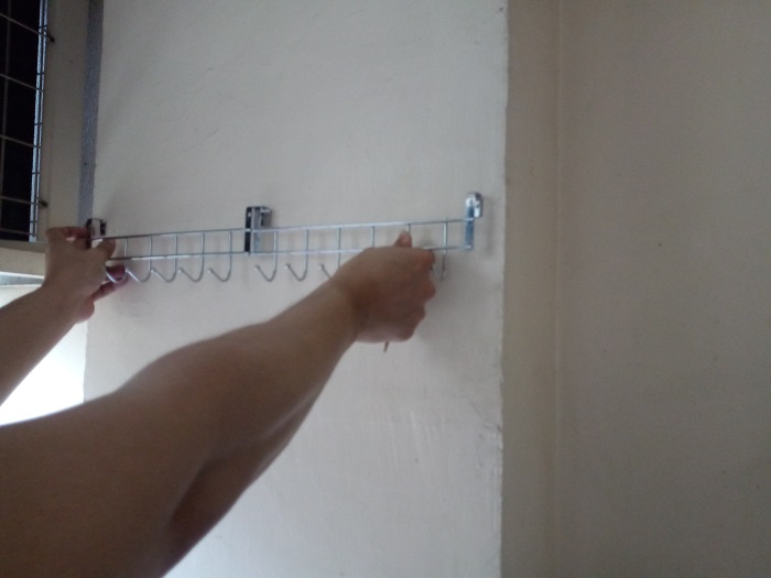 ส่วนแรก เราจะเริ่มติดที่แขวนกุญแจกันก่อนเลยจากผนังว่างๆ ก็ติดเจ้าตัวขอเกี่ยวเข้าไปเลย