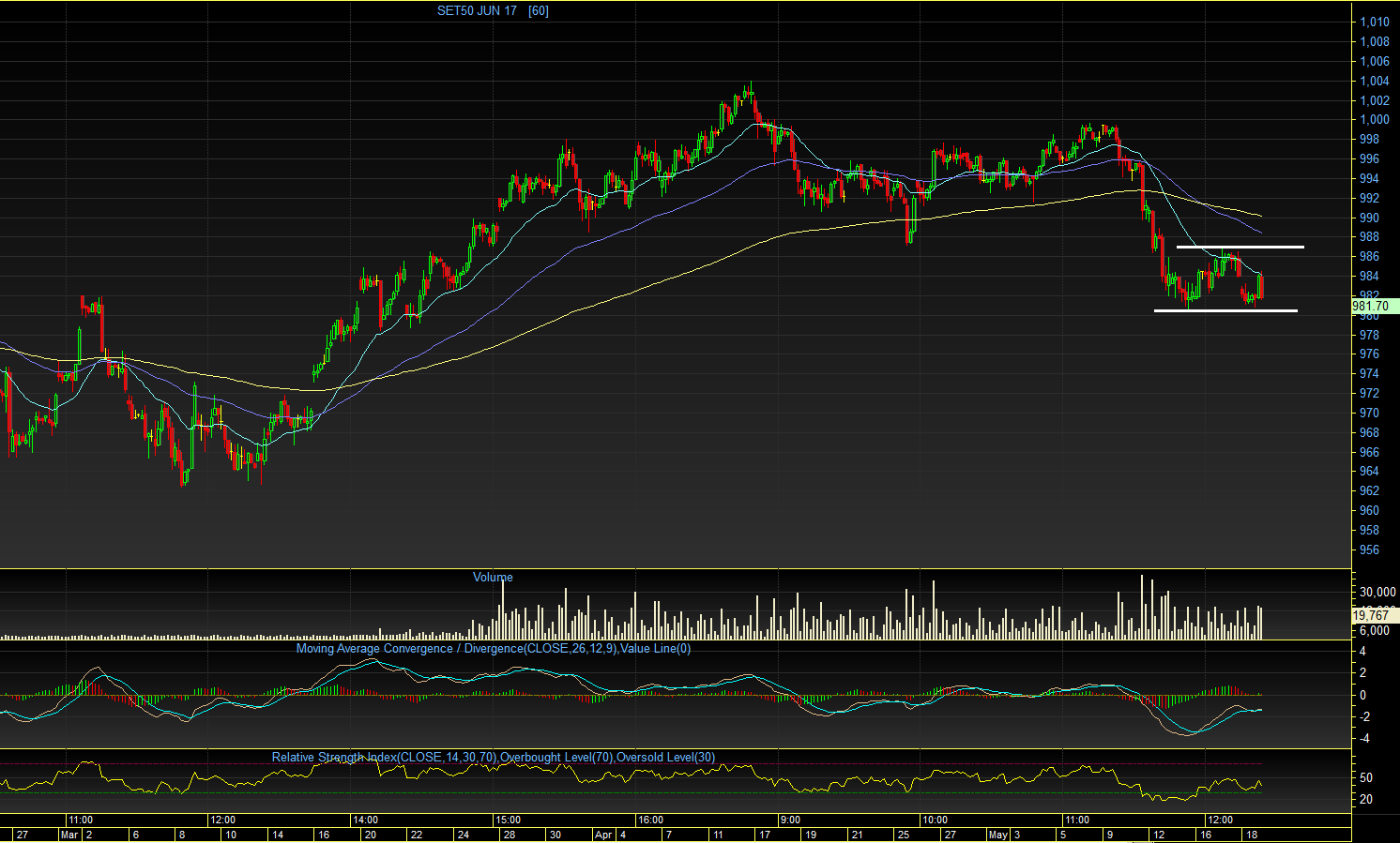 S50M17 TF60min : ดัชนียังคงเคลื่อนไหวแกว่งตัวในกรอบ 980-986 ยังไม่มีทีท่าว่าจะเลือกทางไปในทิศทางใด อย่างไรก็ตาม