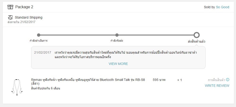 19 พฤษภาคม 60 หลังจากได้กลับไปติดต่อกับ LAZADA ก็ตามให้ได้เบอร์โทรร้าน SO Good เดิมมือถือเดิมในเมล์น่าจะวันที่ 20-21