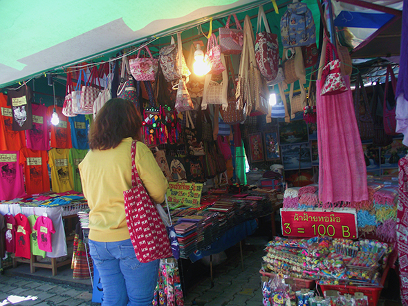พออยู่บนดอยสุเทพจนจะได้เวลาที่คุณลุงรถแดงนัดสองเราก็รีบลงมาซื้อของฝากกันที่ด้านล่าง ของขายถูกนะชอบผ้าพันคอที่นี้มาก และชอบคนขายพูดเป็นกันเองช่วยเลือกสีให้ด้วยน่ารักมาก