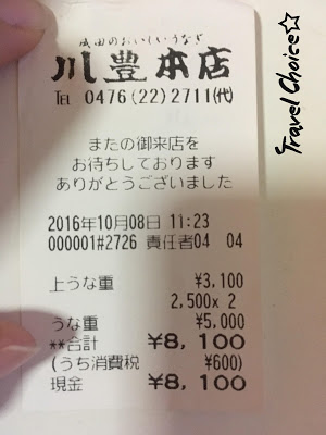 ข้าวหน้าปลาไหลมื้อนี้หมดไปราว 2,500 yen ต่อจาน (854 บาท)