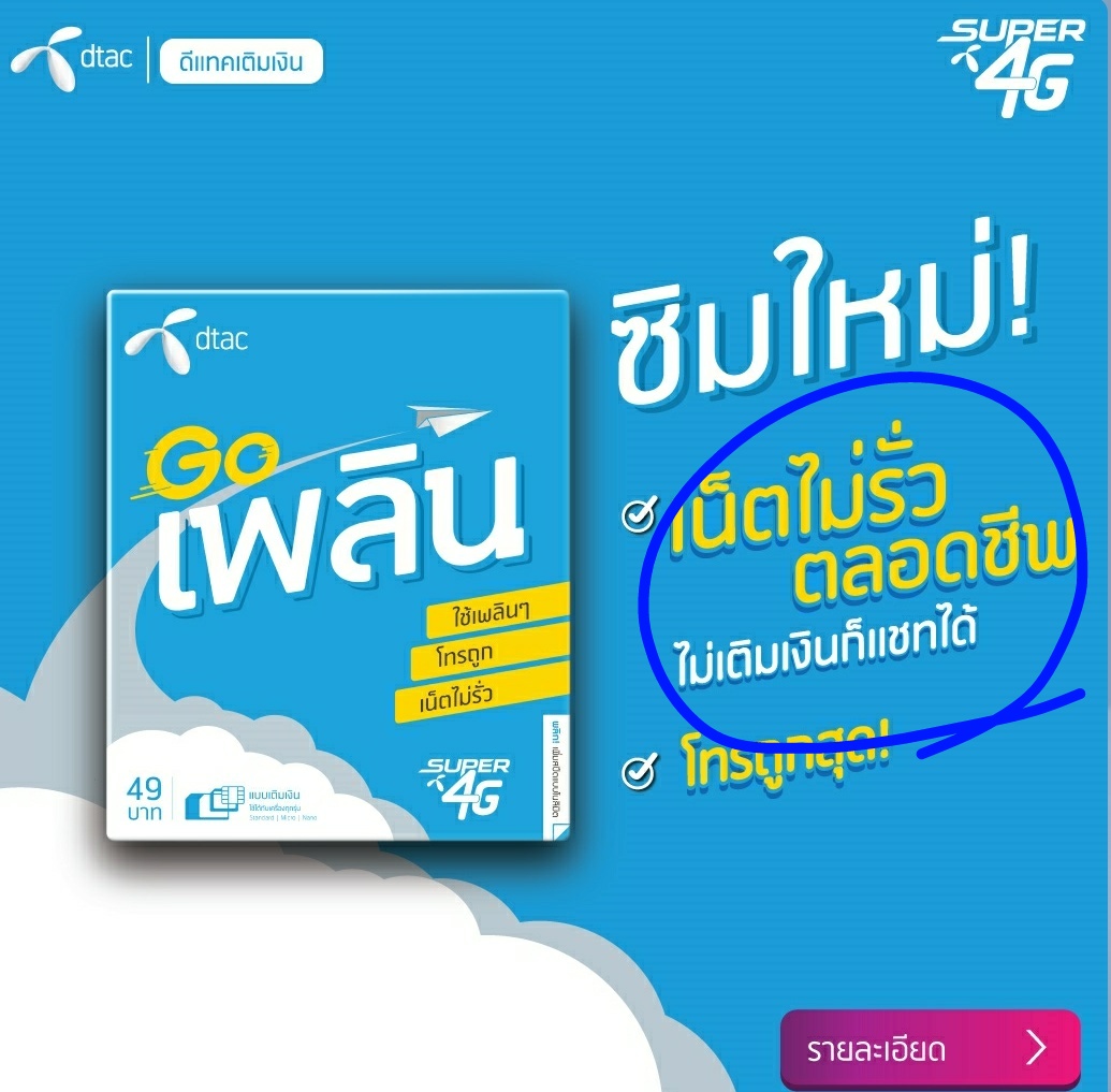 เงื่อนไขของ ซิม Go เพลิน ของ Dtac