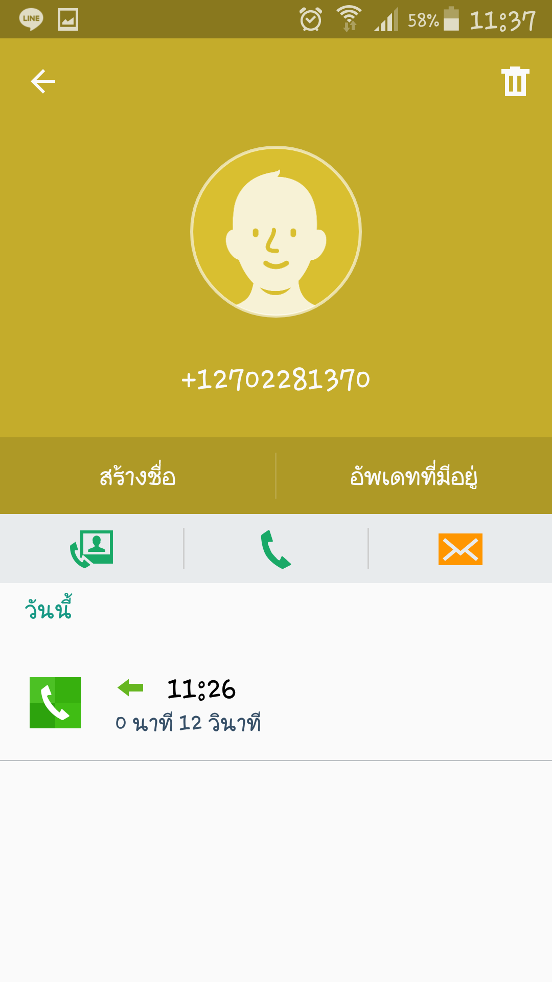 ตอนโทรเข้าใต้ล่างเบอร์ขึ้นว่าเป็นเบอร์จาก Kentucky เราก็เลยไม่รับสายแรกเพราะเราไม่เคยติดต่อกับใครในต่างประเทศเลย พอโทรมารอบสองก็ลองรับดู ปรากฎว่าเป็นเสียงตอบรับอัตโนมัติ เสียงผู้หญิงพูดเป็นภาษาไทยประมาณว่า "ขอบคุณที่สมัครไลน์ค่ะ" แล้วเสียงก็เงียบไป แต่ยังไม่วางสาย เรารอซักแป๊ปก็กดวางสาย จากนั้นก็มีไลน์เด้งขึ้นมาตามรูป