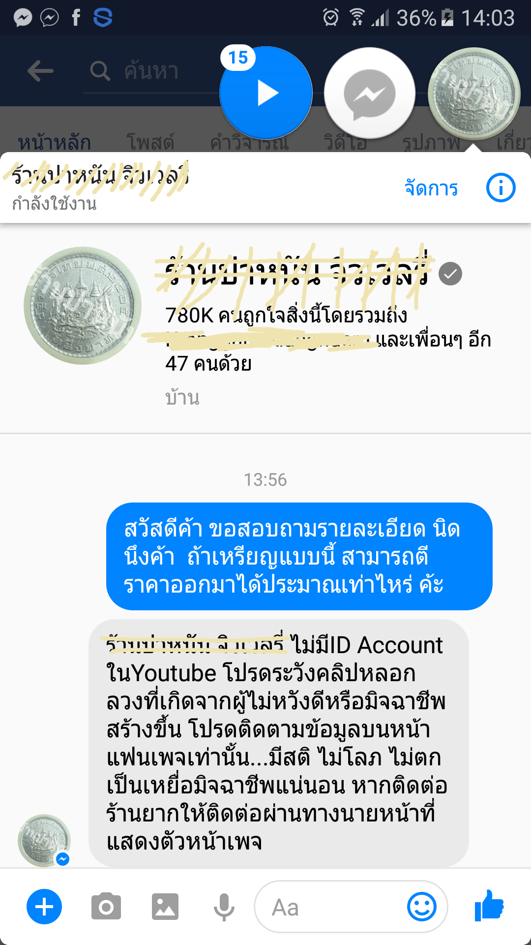เรื่องก็ประมาณว่า สอบถามเกี่ยวกับราคาเหรียญเก่า ในเพจรับซื้อ เพจนึงคือเราไม่ได้คาดหวังคำตอบสวยหรูอะไรหรอกนะค้ะ เราแค่ลองถามราคา เราไม่รู้ว่าเค้าตีความหมายไม่เป็นหรืออะไร เราไม่ได้จะนำไปขายเค้า เราแค่สอบถามราคาดูว่าสภาพเหรียญแบบนี้ได้ประมาณไหนเพราะเราไม่ค่อยรู้เรื่องเกี่ยวกับราคาของเหรียญเก่า แบบนี้ถ้ามีคนอื่นมาถาม ทางร้าน ตอบแบบนี้มาใครเค้าจะมาหาร้านคุณอีก หรือร้านเค้าอาจจะคนเข้าเยอะ มีแต่เหรียญราคาสูงๆ ของถูกๆเลยไม่อยากคุยด้วยละมั้งค้ะ คือเราแค่สอบถาม นี่ งงมาก ตอบมาแบบ นึกว่าต่อราคา ผักปลา ใน ตลาดสด แต่ เทียบไม่ได้ค้ะแม่ค้าตลาดยังรู้จักหาวิธีพูดตอบ ลูกค้าได้ดีกว่าเลยค้ะ