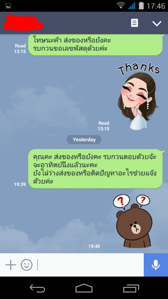อาจติดธุระบ้าง เข้าใจ แต่บอกว่าไม่เกิน 5 วัน แล้วไหนอ่ะ ยังไม่ได้ของ ข้อความก็ไม่ตอบกลับ