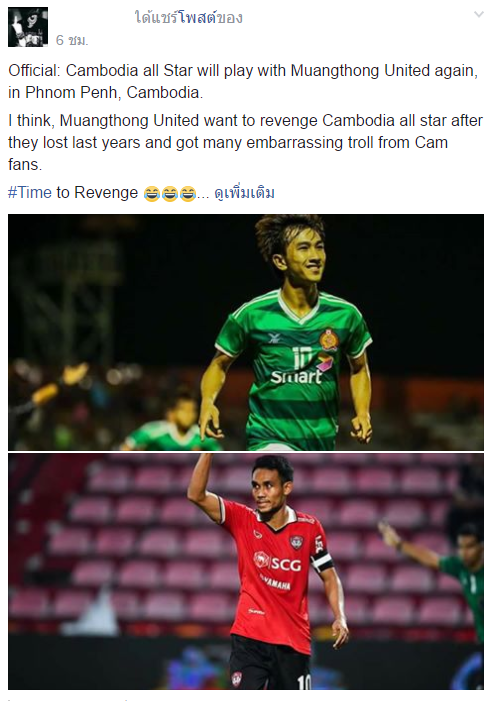 COMMENTS ชาวเขมรหลังรู้ว่า Cambodia all star ต้องแข่งกับเมืองทองอีกครั้ง!