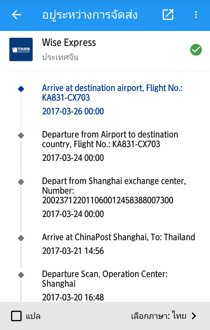 ของมาถึงเมืองไทยนานแล้วแต่ไม่ได้รับซักทีมีวิธีตามไหมครับ wise express