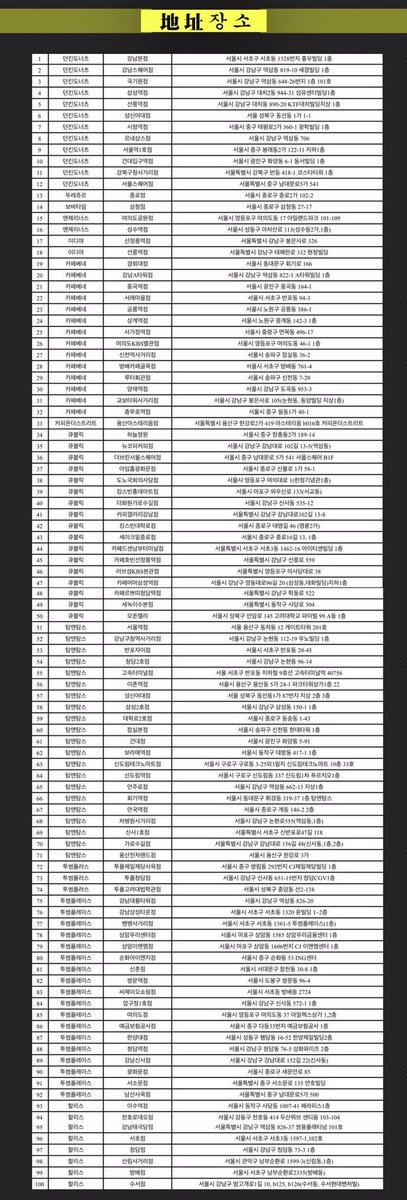 อันนี้คือรายชื่อคาเฟ่ที่จะฉาย 100 ที่ค่ะ